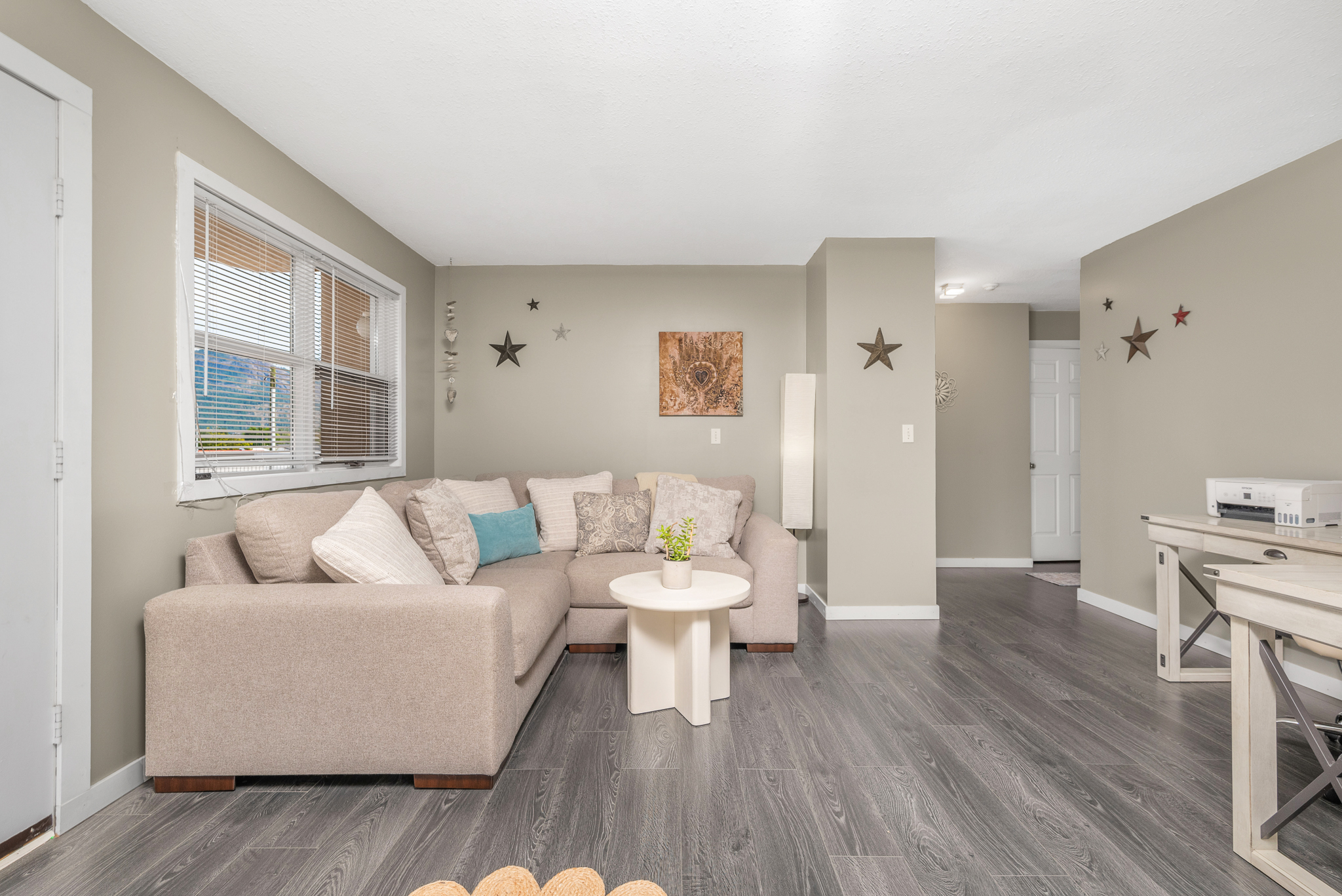 Discover the best of small-town living in the heart of Enderby. This beautifully updated one-bedroom, one-bathroom home is move-in ready and perfect for those seeking a simple, comfortable lifestyle. Thoughtfully refreshed in 2023 with new stainless steel appliances, a new washer and dryer, and a new air conditioning unit, there’s nothing left to do but move in and enjoy. The bright, open-concept layout is filled with natural light from large windows and features in-suite laundry and a smart, functional floor plan designed for easy everyday living. Step outside to your private balcony, the perfect spot for a morning coffee or to enjoy a little fresh air. Located in a welcoming 55+ community, this well-cared-for complex includes a designated parking stall and access to a shared common room ideal for hosting gatherings or visiting with friends and neighbours. One small pet is welcome (up to 12 inches or 20 pounds), helping maintain a friendly and community-focused environment. Best of all, you’re within easy walking distance of everything Enderby has to offer: shops, restaurants, medical services, and more. Lovingly maintained and ideally located, this charming home offers a wonderful opportunity to downsize comfortably and enjoy relaxed living in a vibrant small-town community.