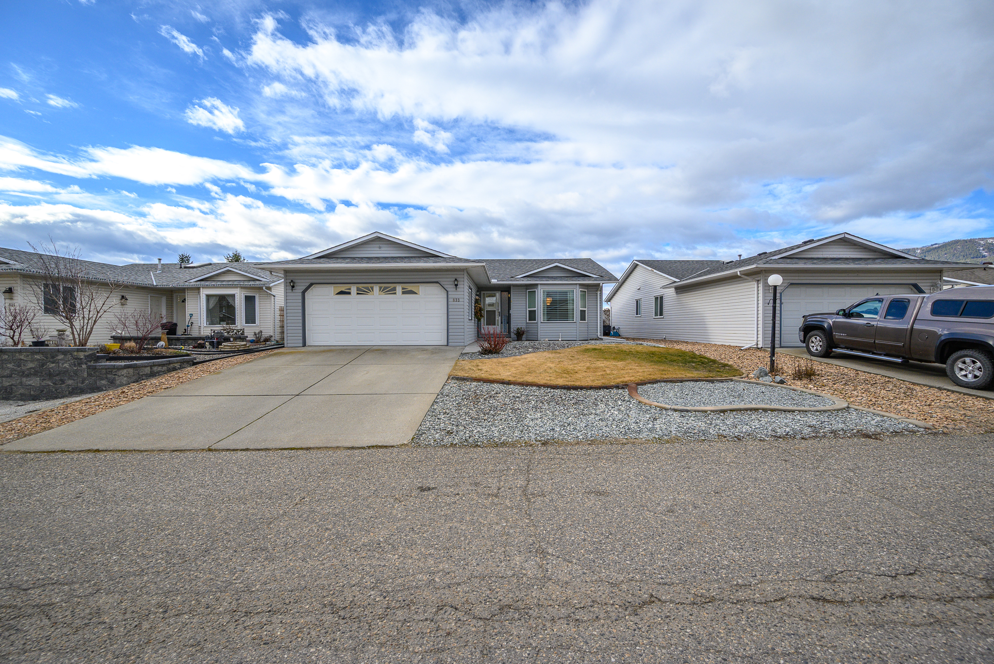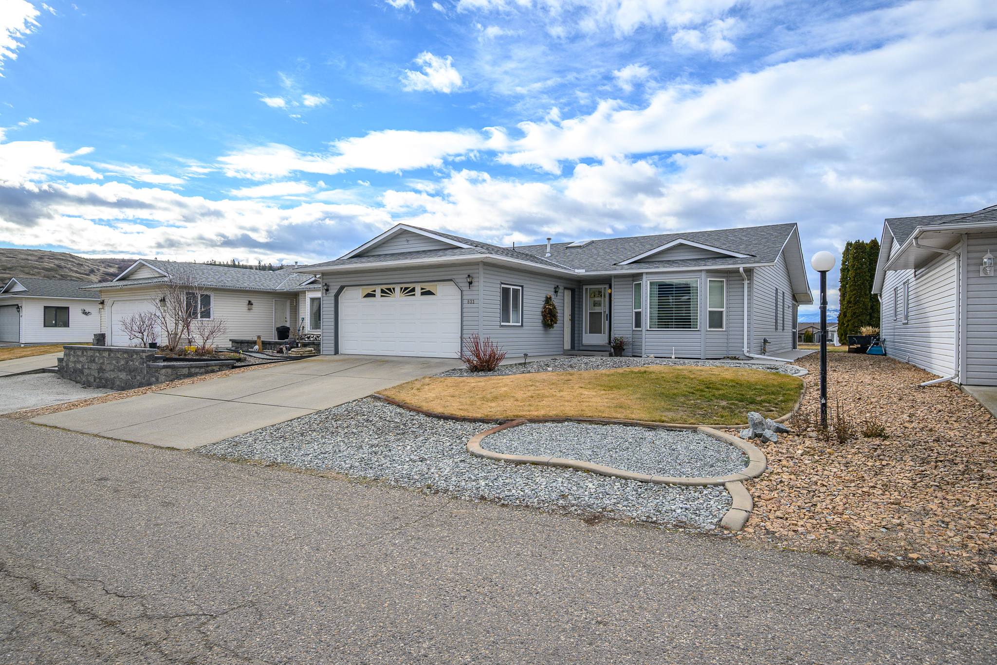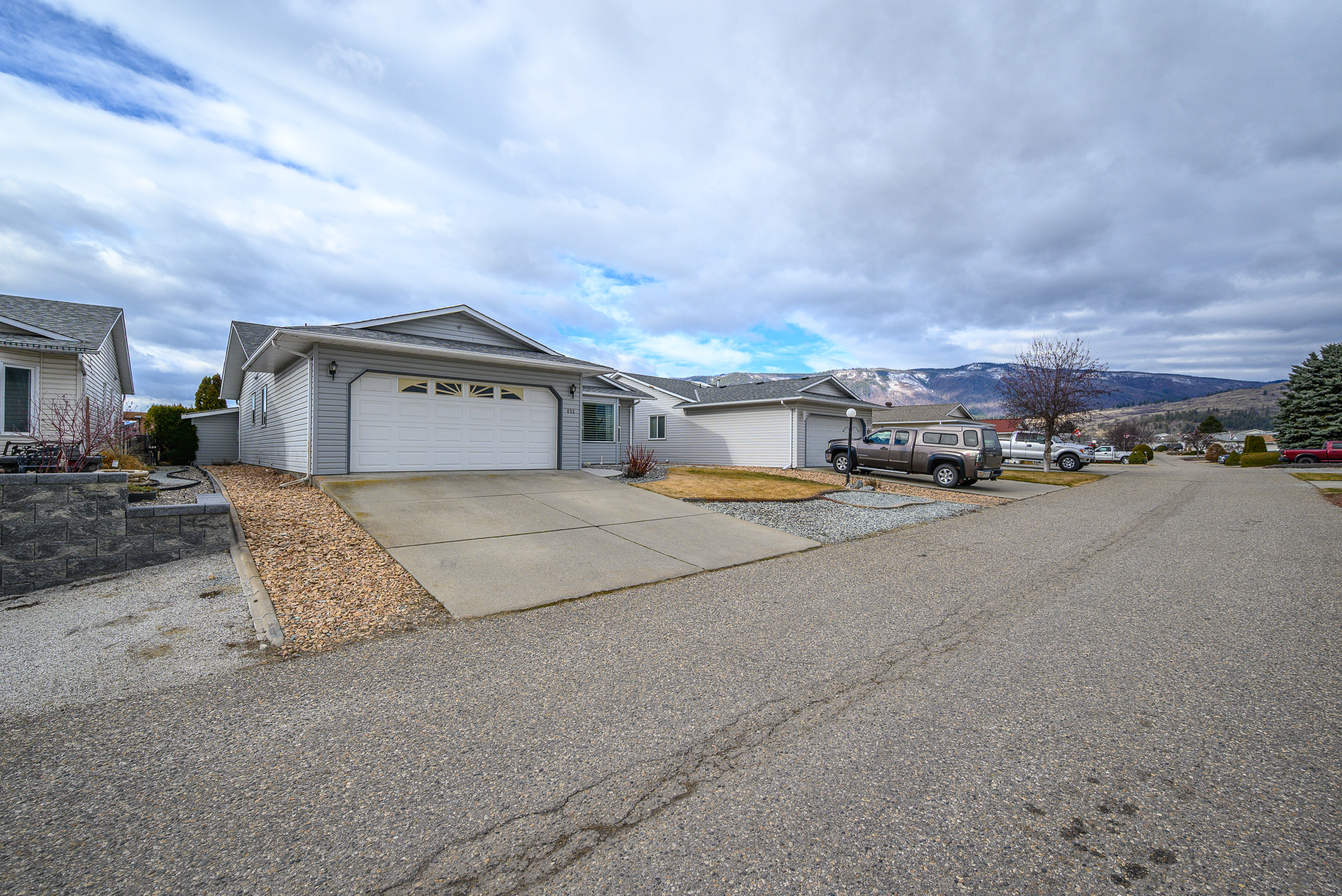 Welcome to the 40 plus community of Desert Cove and this fantastic, all one level 2 bedroom, 2 bathroom home with a double car garage. Offering a bright and functional layout, there is plenty of room to spread out and add your own creativity. The updated white kitchen is bright and inviting, filled with natural light and seamlessly connected to the family room with direct access to the huge covered screened in back porch and the backyard, perfect for entertaining. A formal dining room and spacious living room with gas fireplace provide plenty of space for gatherings. The generous primary bedroom with a full ensuite. A second bedroom and full bath provide flexibility for guests or hobbies. Step outside to enjoy the lovely yard, perfect for relaxing or gardening in the Okanagan sunshine. With back lane access. Plumbing updated in 2025, this home has been well maintained! Desert Cove is known for its welcoming atmosphere and active lifestyle. Residents can enjoy a full social calendar, exercise programs, clubhouse, indoor pool, hot tub, recreation hall, library, and fitness space. You will quickly discover the friendly spirit of this community as neighbours walk, bike, and golf cart throughout the area. Lease paid to 2068. RV parking available subject to availability. Located within walking distance to Spallumcheen Golf and Country Club and just minutes to Okanagan Lake. An excellent opportunity to enjoy easy living in one of the North Okanagan’s most desirable adult communities.